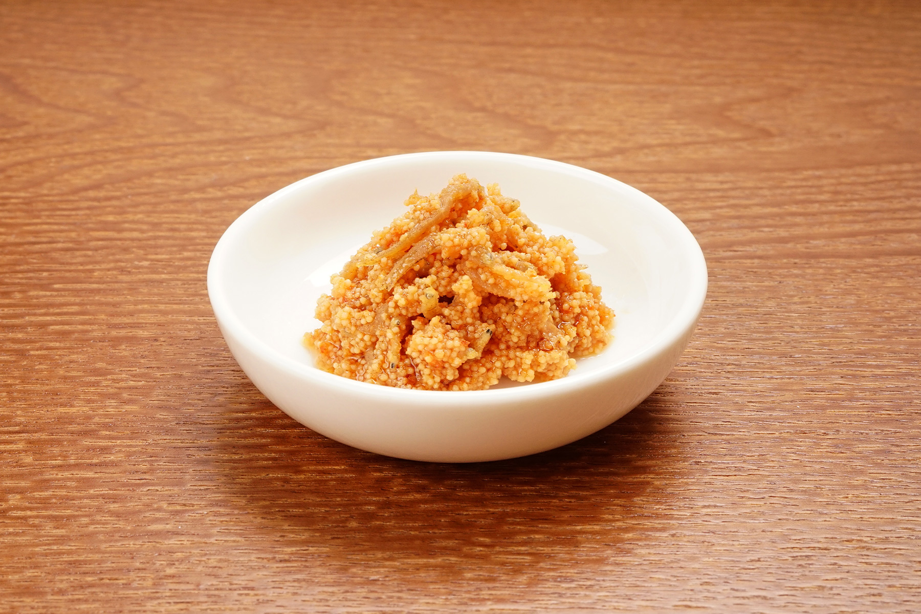 明太子と淡路産ちりめんを上質な綿実油で丁寧に仕上げ、それぞれの旨みをぎゅっと閉じ込めました。ひと口含めば明太子のコクが広がり、あとからちりめんじゃこの風味が追いかけてくる、絶妙な味わいの重なりをお楽しみいただけます。