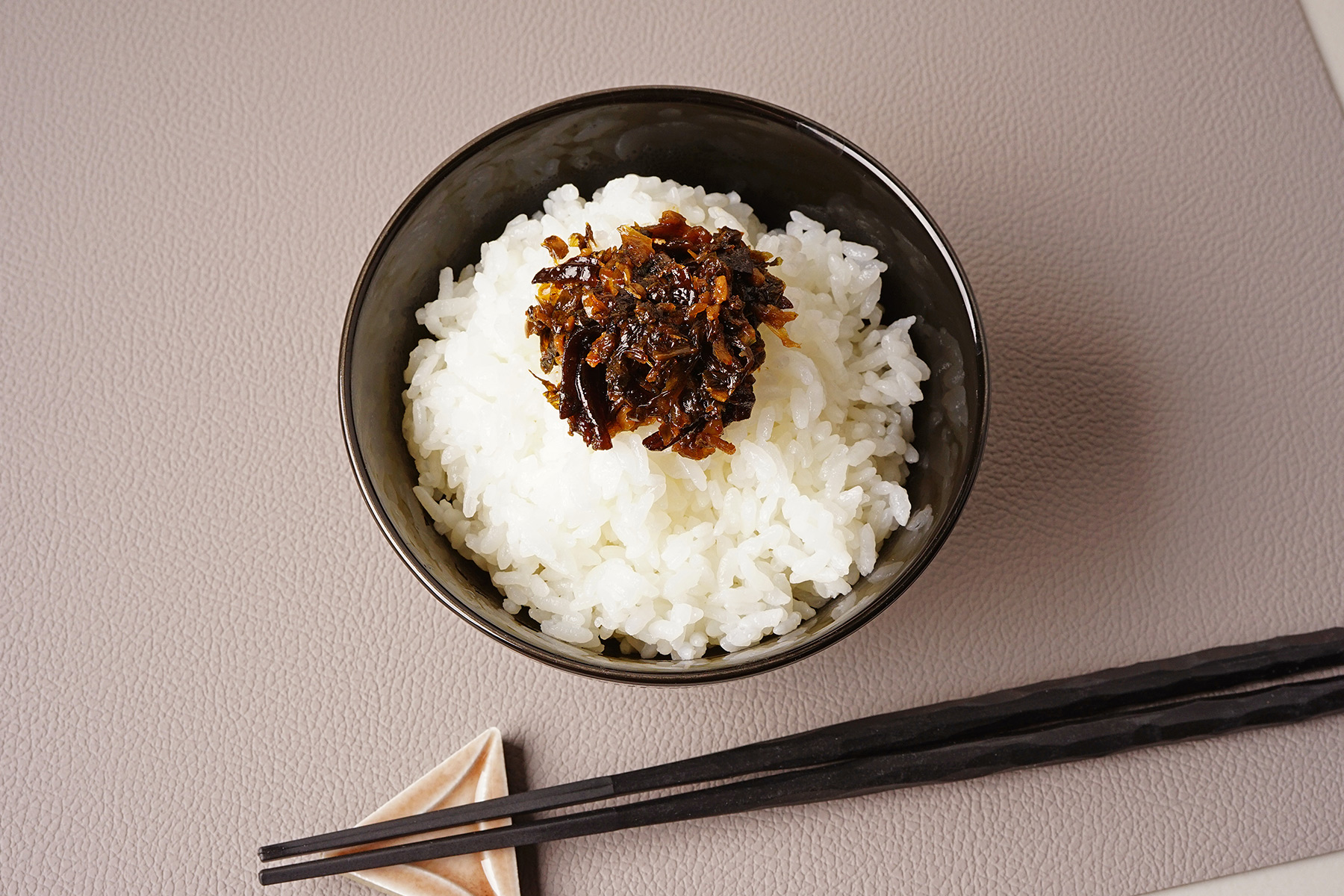 食感と辛味がクセになるラー油としそ高菜の旨みを引き立てたご飯のお供。