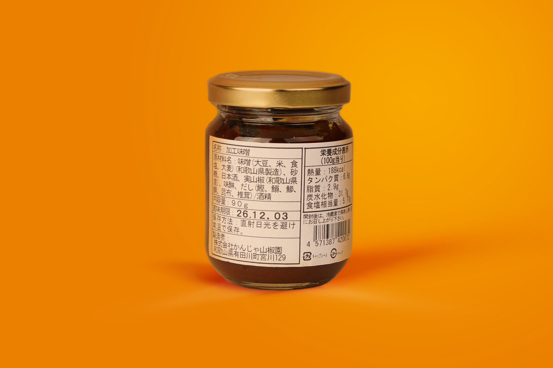 味噌(大豆、米、食塩、大麦)(和歌山県製造)、砂糖、日本酒、実山椒(和歌山県産)、味醂、だし(鰹、鰯、鯵、鯖、昆布、椎茸)/酒精