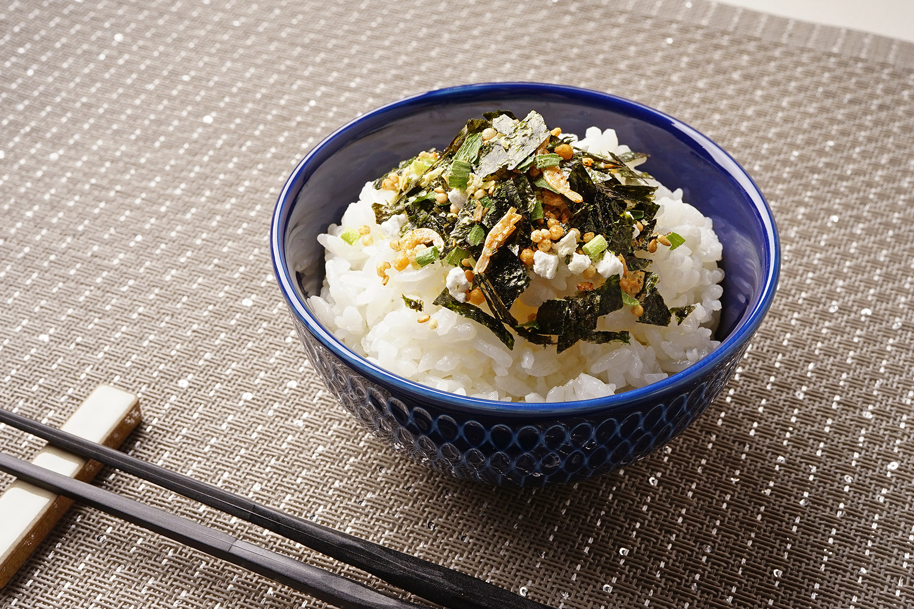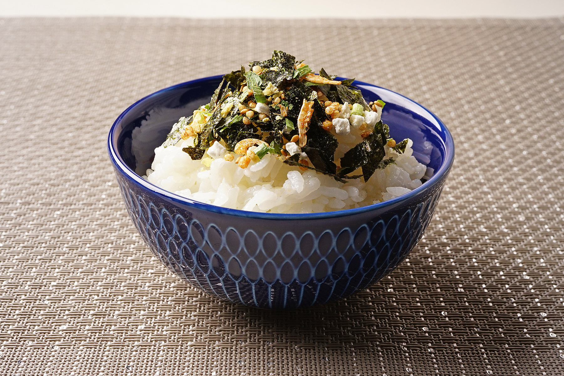 いりごま(国内製造)、乾のり、でん粉、大豆フレーク(大豆を含む)、乾えび、砂糖、しょうゆ(小麦を含む)、あられ、乾燥味付椎茸、乾燥ねぎ、乾燥ほうれん草、乾燥山芋、抹茶風味顆粒、デキストリン、煮干、かつお削りぶし、魚介エキス、昆布、焼きえび、乾しいたけ、焼きあご、(飛魚)/酸化防止剤(V.E)