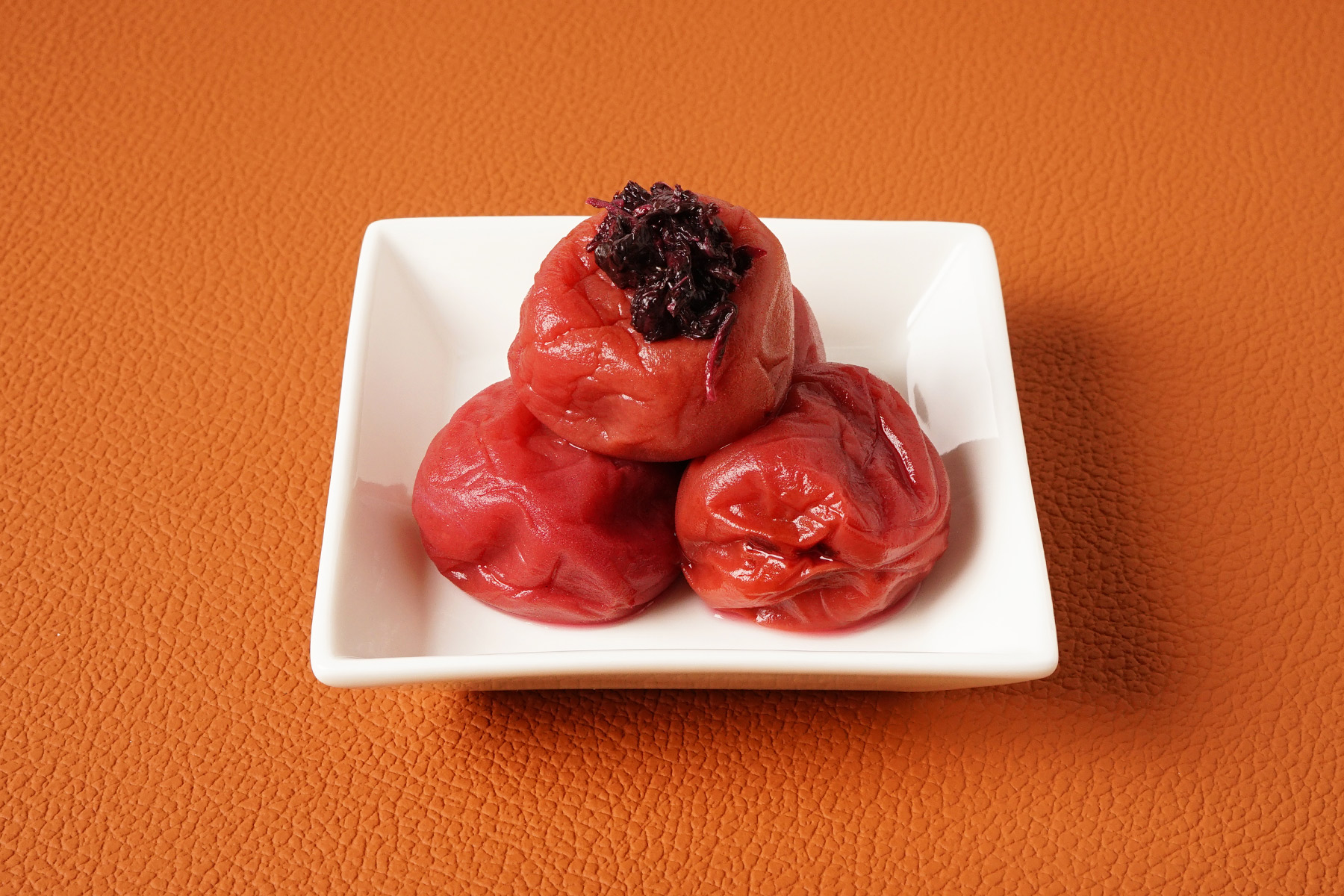 皮が柔らかく、フルーティな香りが特徴の完熟南高梅と、徳島県から取り寄せた、葉が細かくて香りの良い赤紫蘇は相性抜群です。