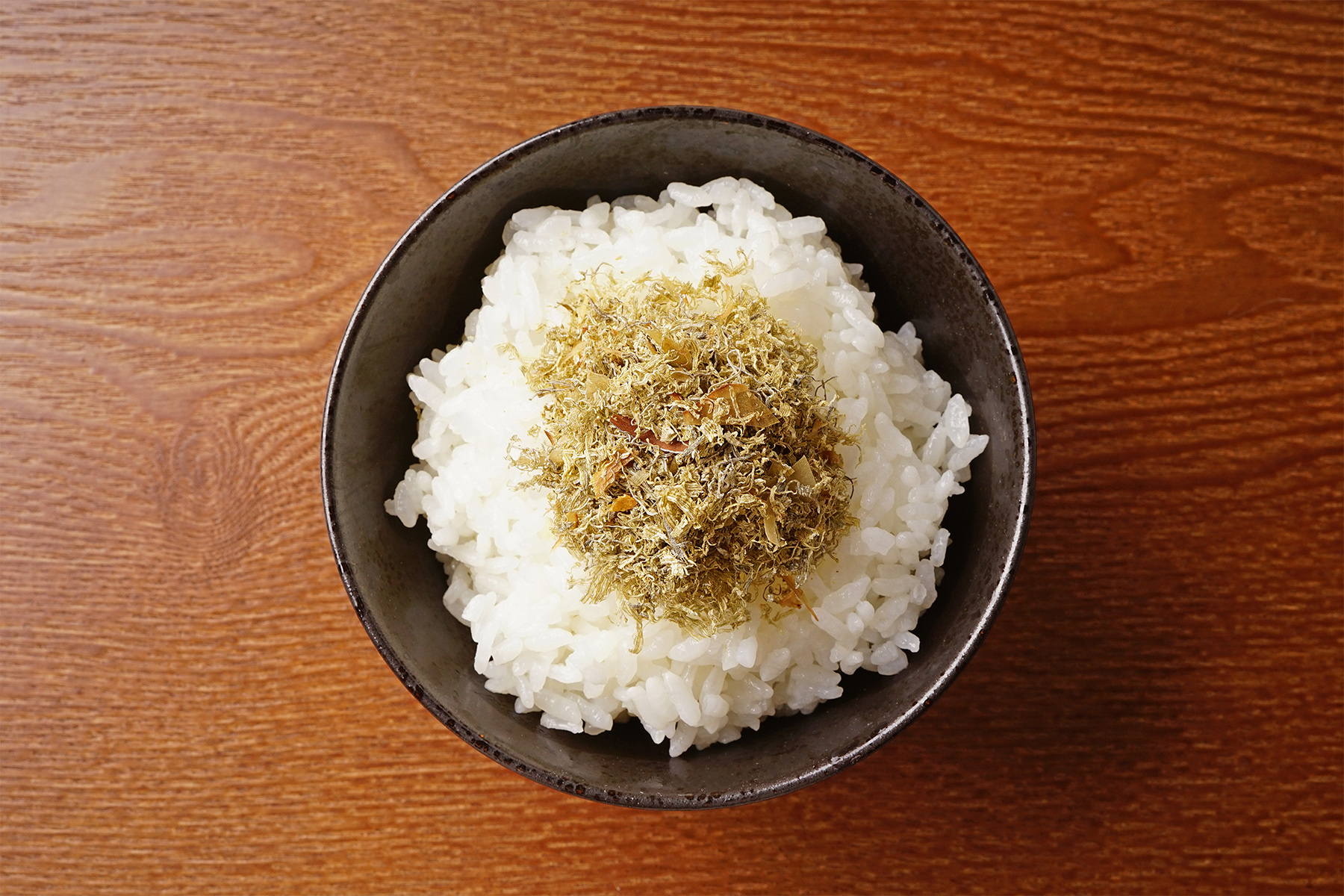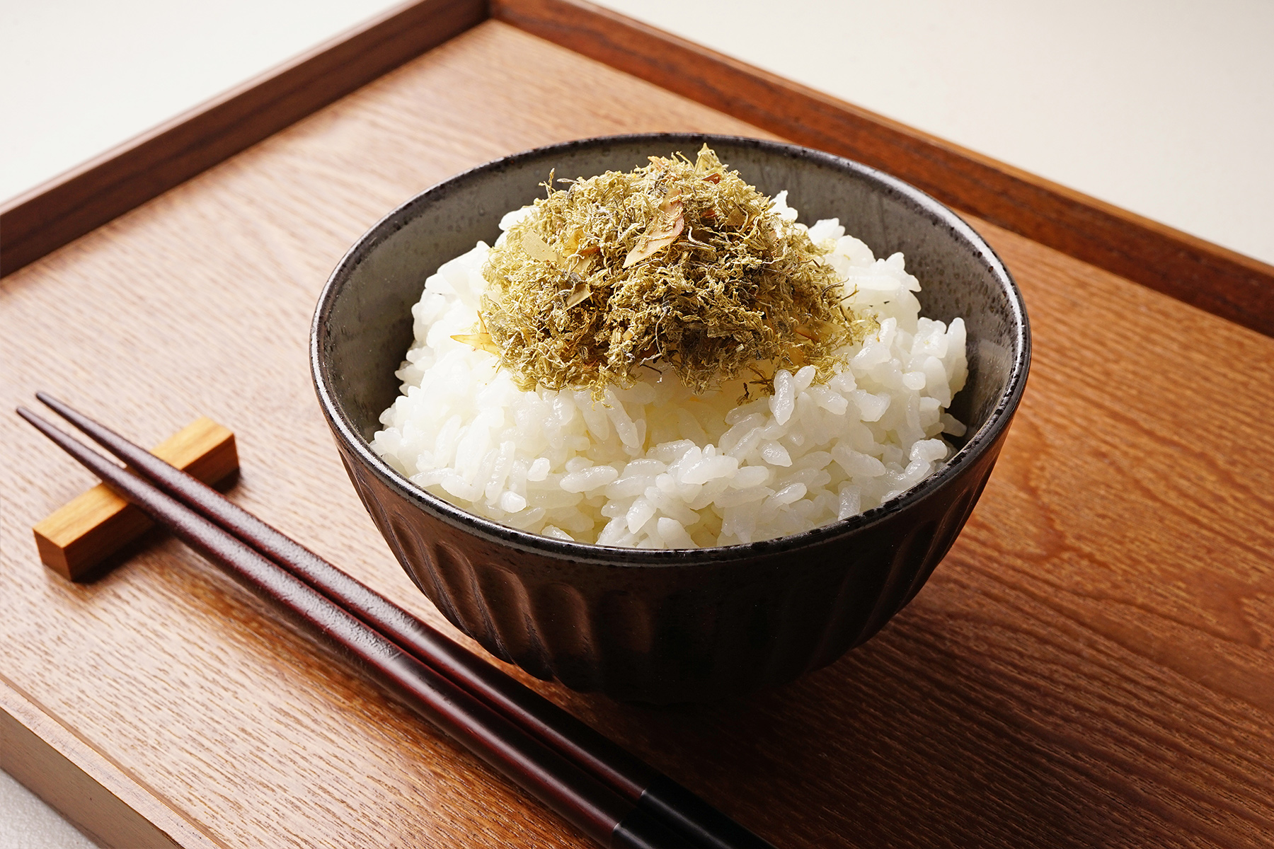 温かいごはんにふりかけたり、おにぎりにまぶしてお召し上がりください。卵かけごはんなどのトッピングにも最適です。