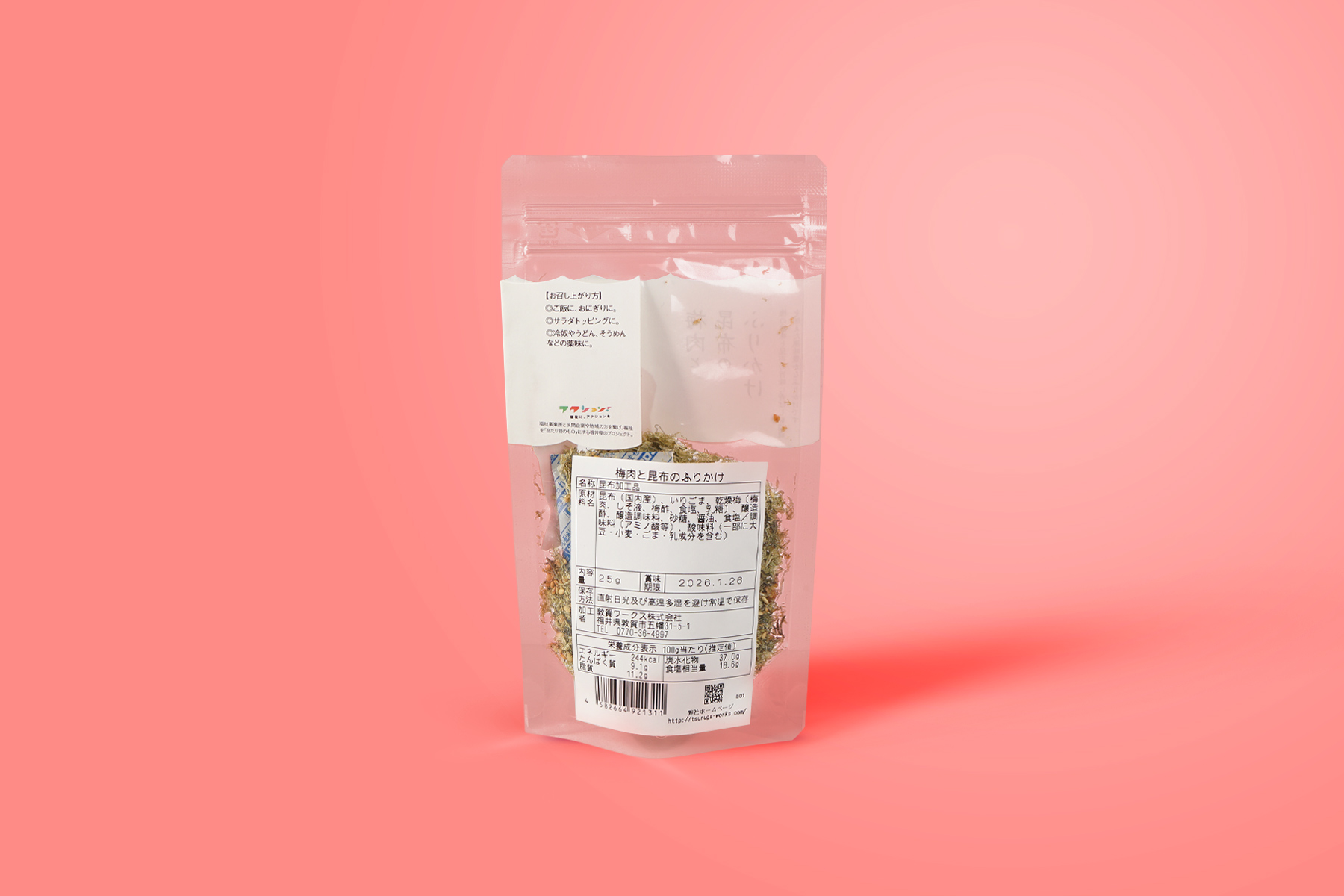 紀州産フリーズドライ梅の酸味と、昆布の旨味に香ばしいごまを合わせた風味豊かなふりかけ。